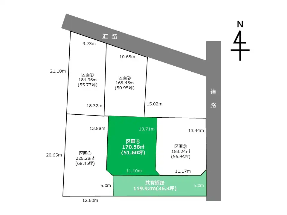 | 備考 | ・建築確認(第R05建築確認山形天童00124号) ・共有道路(119.92㎡)の持ち分2/5を所有いただきます。代金は売買代金に含まれております。 |