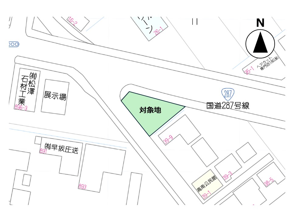 道路 北約18m、南西約8m
